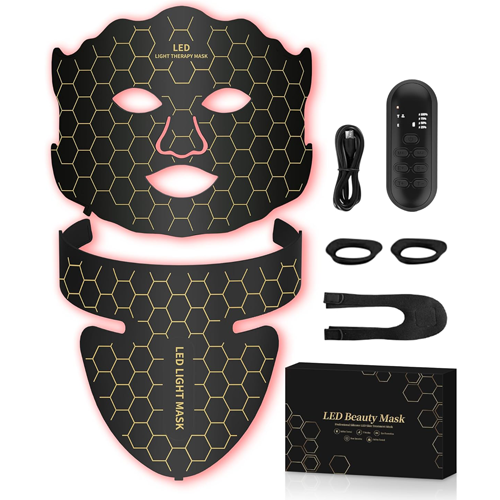 얼굴용 적색광 요법, LED 얼굴 마스크 광 요법, 7가지 색상 LED 얼굴 및 목 마스크 광 요법, 집에서, 검정