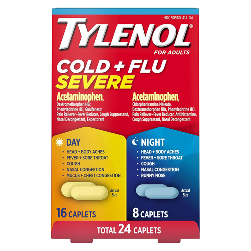 [ Tylenol ] 감기 + 독감 심한 낮과 밤 캡슐형, 발열, 통증, 기침 및 코막힘 완화, 24정