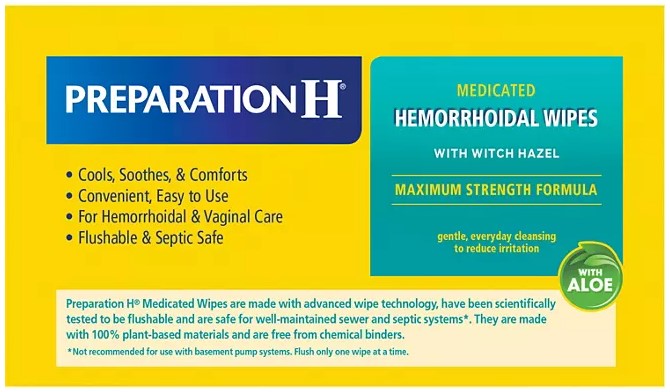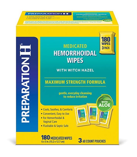 [ Preparation H ] Maximum Strength Medicated Hemorrhoidal Flushable Wet Wipes,180 ct.