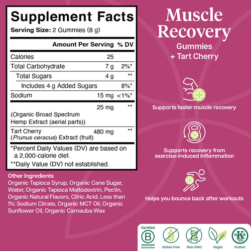 한계를 뛰어넘으려는 노력은 몸에 무리를 줄 수 있지만, 저희가 옆에서 도와드리겠습니다. 그리고 저희는 어중간한 동작은 용납하지 않습니다. 이 다크 체리 구미는 광범위한 효능을 지니고 있으며, 타르트 체리가 풍부하게 함유되어 근육 기능 향상, 회복 촉진, 그리고 운동으로 인한 염증 완화에 도움을 줍니다.